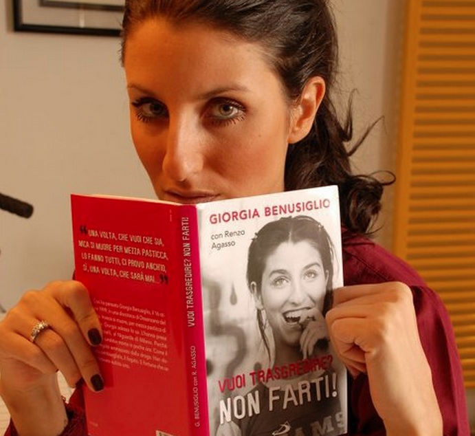 Giorgia, infatti, all’età di 17 anni assunse mezza pasticca di extasi, che le risultò fatale, essendo stata ricoverata urgentemente in terapia intensiva per un mese e mezzo, durante i quali è arrivata a pesare 27 chili. “Sono in vita grazie a una persona che invece non c’è più” afferma Giorgia, riferendosi al trapianto di fegato di 17 ore a cui si è sottoposta nel 1999. Tale organo le era stato infatti donato da Alessandra, la ragazza che “è riuscita a sconfiggere la morte”, in quanto una parte di lei rimarrà per sempre all’interno di Giorgia. La Benusiglio ne è uscita infine vittoriosa, però con le conseguenze di dover assumere pesanti farmaci quotidianamente e di sottoporsi ad analisi del sangue una volta al mese. Nonostante ciò, ha avuto il coraggio di incontrare gli studenti di moltissime scuole italiane e inoltre di mettere il tutto per iscritto sui libri “Vuoi trasgredire? Non farti” e “Io non smetto”.