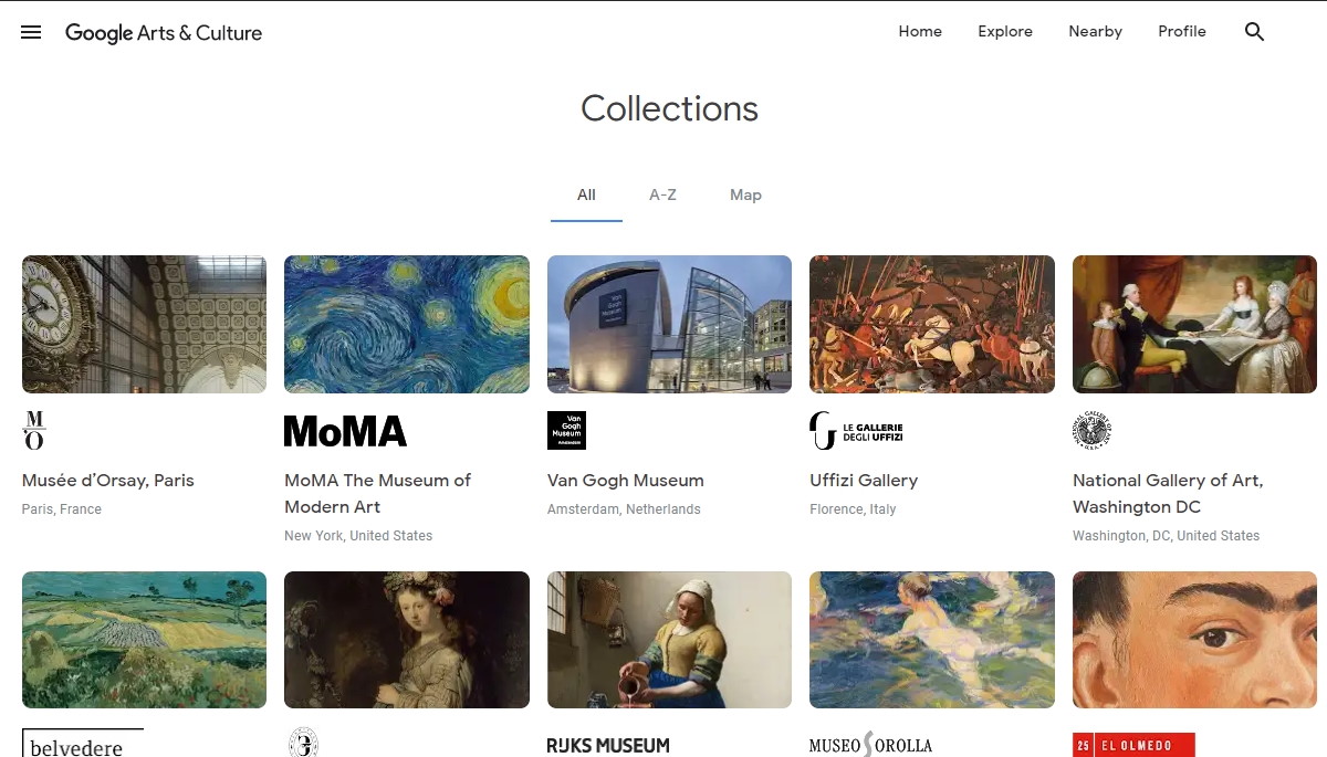 Tra i più importanti musei che si sono organizzati per rendere possibile questa iniziativa ci sono il Louvre di Parigi, il British Museum di Londra, il Vang Gogh Museum di Amsterdam, l’Hermitage di San Pietroburgo, il Guggenheim di New York, in Italia i Musei Vaticani, che comprendono anche la Cappella Sistina, e la Pinacoteca di Brera.