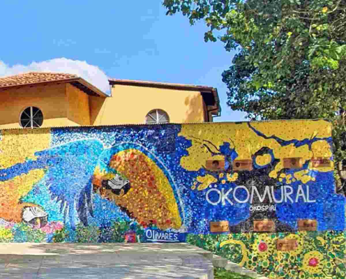 Collaborando con un’organizzazione per la salvaguardia dell’ambiente, la OkoSpiri, ha realizzato un murale raffigurante pappagalli, girasoli e fiori di vario tipo, utilizzando una superficie di 45 metri di lunghezza.