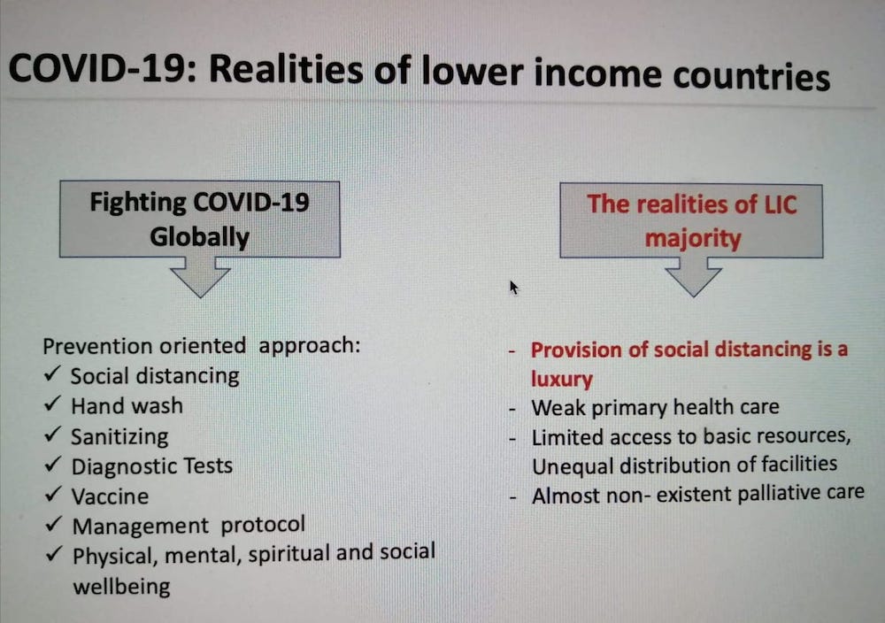 Nei paesi a bassissimo reddito e con condizioni economiche, sociali e politiche particolarmente gravi, il distanziamento sociale è considerato un lusso. Infatti, migliaia di persone vivono in baraccopoli talmente ammassate che la protezione dal droplet dei vicini di baracca è impraticabile.