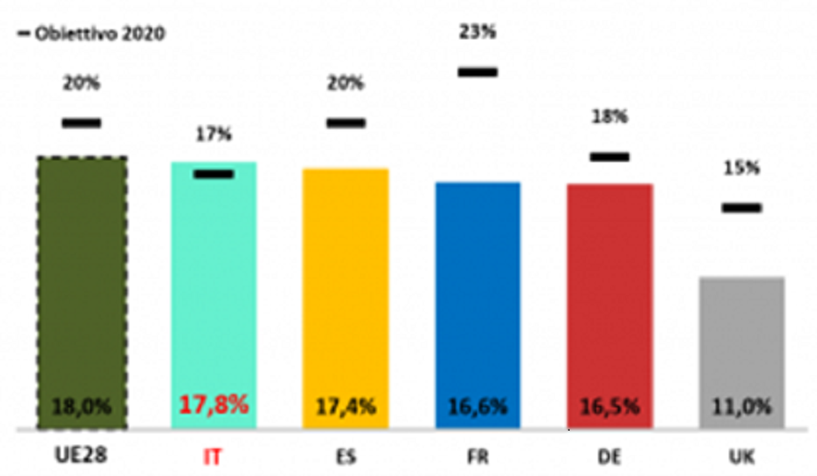 L’Europa è guida nel mondo sul tema della transizione energetica e già da tempo aveva creato leggi a favore della conservazione dell’ambiente e della riduzione dell’inquinamento. Nella classifica dei paesi europei (stilata dal GSE sui dati del 2018) l’Italia, rispetto al resto d’Europa si è posizionata al terzo posto per il contributo delle green energy sui consumi finali lordi e seconda per produzione elettrica verde. Dati che fanno onore alla nostra nazione e alle sue eccellenze nel campo dello sviluppo energetico. Inoltre l’Italia è tra quei paesi che hanno visto negli ultimi anni una maggiore diminuzione dell’utilizzo del carbone in favore dell’energia solare ed eolica. Il nostro paese è anche l’unico tra i principali stati europei (Germania, Francia, Spagna) ad aver raggiunto l’obbiettivo della direttiva europea del 2009 che assegnava al nostro paese la necessità raggiungere entro il 2020 l’impiego di fonti energetiche rinnovabili per il 17% dell’energia nazionale, arrivando persino al 17,8%.