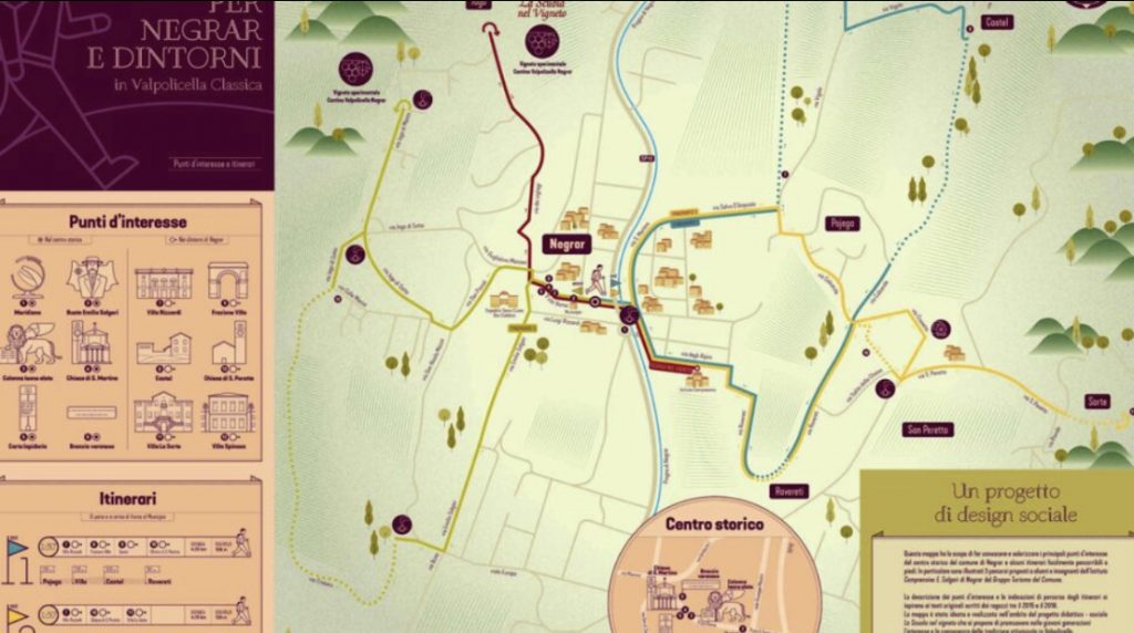 L’iniziativa prende il nome di “A piedi per Negrar e dintorni”, mira alla scoperta di luoghi suggestivi proprio della Valpolicella e si articola in tre itinerari differenti, proposti e descritti da alunni e docenti dell’Istituto Comprensivo di Negrar, che si impegnano ogni anno nel progetto “scuole nel vigneto”, il quale prevede la vendemmia nei pressi di questi territori per poi andare a disegnare l’etichetta per le bottiglie di amarone e valpolicella.