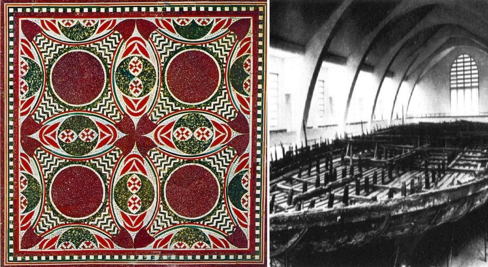 Presso il Lago di Nemi gli abitanti raccontavano che sul fondale vi fossero due relitti di navi gigantesche, ed in effetti quando si pescava le reti riportavano alla luce oggetti antichissimi: fin dal 1400 si tentò di riportarle a galla con uncini; anche nel 1800 con i primi palombari si cercò di fare qualcosa, ma sempre con pochi successi; solo nel 1928 si riuscì a farle emergere con l’aiuto di antichissimi condotti preromani che servivano per regolare il livello del lago. Dopo avere ripristinato questi condotti si iniziò a svuotare il lago, facendo così riemergere le due navi che furono portate a galla mettendole su un supporto metallico con ben 78 ruote.