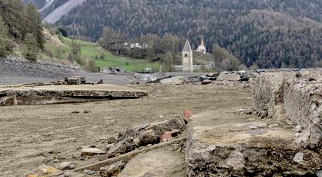 Al lago di Resia, in Val Venosta, Trentino Alto Adige, sono in corso alcuni lavori di manutenzione e così il livello dell’acqua è stato abbassato, e il bacino idrico in parte svuotato. Per questo motivo sono tornati alla luce i resti del paesino che venne sommerso nel 1950.