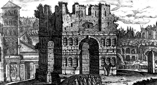 Nel Cinquecento si salvò anche dalla distruzione, voluta da papa Sisto V, dei monumenti pagani per utilizzarne marmi e colonne nei nuovi edifici cristiani. Nella volta a crociera all’interno dell’Arco sono comunque ancora scolpite le quattro divinità femminili più popolari in città: la dea Roma con Giunone, Minerva e forse Cerere.