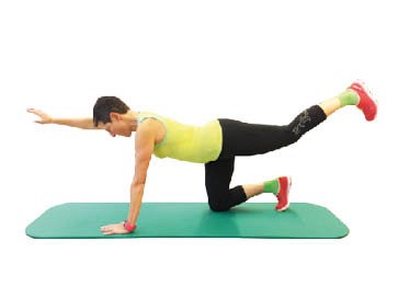 Dunque estendi la gamba destra ed il braccio sinistro e mantieni la posizione per qualche secondo, dopodiché torna nella posizione iniziale. Svolgi l’esercizio tendendo la gamba sinistra ed il braccio destro.