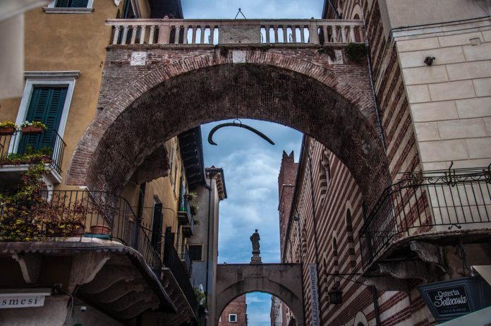 “L’Arco della Costa”, si chiama proprio così, risale all’epoca della Verona veneziana (1405-1796), e permetteva ai magistrati, nominati dal governo della Serenissima, di spostarsi in sicurezza dalla loro residenza, la Domus Nova, a Palazzo della Ragione (allora tribunale della città).