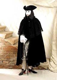 La Bauta era uno dei travestimenti più utilizzati sia da uomini e donne nel Carnevale antico, esso era costituito da una maschera bianca detta “larva” e un “tabarro” un mantello completamente nero che avvolgeva tutta la figura. Questo travestimento era usato non solo a teatro, ma anche per incontri segreti e feste, in modo da rimanere nel totale anonimato.