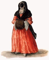 La maggior parte delle donne indossava la Moretta, che era costituita da una maschera di velluto scura e un cappello, accompagnato da vestiti dello stesso colore e raffinati. Chi indossava questo travestimento non poteva parlare, infatti, la maschera era retta da un bottone interno che bisognava tenere in bocca.