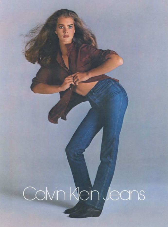 Tornando all’ambito internazionale, l’enorme potenziale dei jeans fu notato anche dal famoso stilista Calvin Klein che nel 1976 portò in passerella un paio di blue jeans, e con la modella Brooke Shields pubblicizzò il suo nuovo prodotto, tappezzando i muri delle città americane con le magnifiche foto che le aveva scattato il famoso fotografo Richard Avalon.