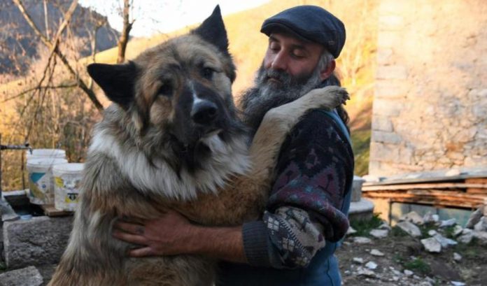 Damiano ci racconta che, subito dopo aver acquistato le prime capre, si sono sentiti in dovere di prendere anche dei cani da guardia perché avevano il timore che di notte i lupi potessero attaccare gli animali. Nell’azienda quindi sono arrivati i primi due cani: Seralda e Gherta da cui, successivamente, è nato Gazunt, un mix di pastore del Caucaso che adesso ha due anni con uno sguardo tenero ma dal fisico possente, pesa 60 chili ed è il guardiano di Orko Beko.
