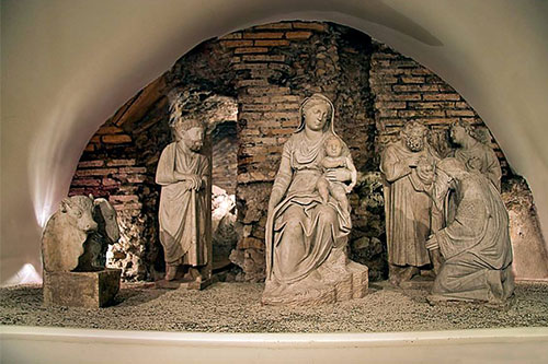 La raffigurazione della natività ha origini antiche: i cristiani dipingevano e scolpivano le scene della nascita di Cristo nei luoghi di incontro come le catacombe romane. Solo quando il Cristianesimo uscì dalla clandestinità, le immagini della natività cominciarono ad arricchire le pareti delle prime chiese. Il primo presepe con tutti i personaggi risale al 1283 per opera di Arnolfo di Cambio scultore di otto statue lignee. Questo presepio è conservato nella Basilica di Santa Maria Maggiore a Roma.