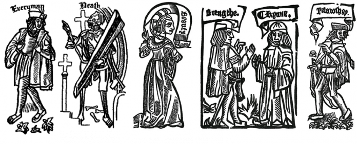 This morality play is highly allegorical and we can understand it from the personification of various emotions and actions such as Virtues and Vices, which are at odds with each other. Everyman literally “anyone” personifies not only his character, but represents all men on earth. In the representation, on one day God decides to send Death to Everyman, who will tell the protagonist that he will have to appear before the divine to be judged. When he realises the situation, Everyman offers Death some money begging to do without him, but it denies him this favour and tells him that, in case, what he can do is choosing companions who will be close to him in the moment of judgement.