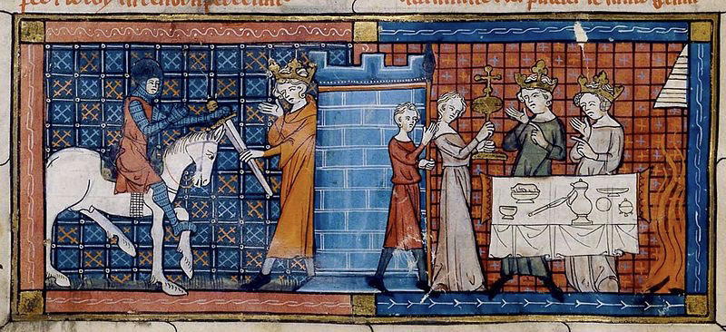 During a banquet in the castle of King Fisherman there is a woman sitting near the king that holds in her hand the holy cup.