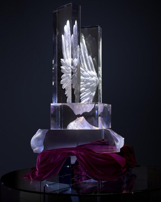 La scultura di Zaffina, infatti, vuole rendere omaggio al celeberrimo artista, realizzando un’opera che reinterpreti una delle sculture più famose e più belle: Amore e Psiche. Il progetto consiste in una vera e propria cosiddetta “d’après” dell’opera trasparente, ovvero, l’elaborazione della famosa statua sotto la chiave artistica di Zaffina. Egli infatti cerca di unire le forme della scultura classica con il suo approccio da archeologo del contemporaneo. Questo è ciò che si può proprio notare nell’opera “Crisalide”: la statua dal tema e racconto classico con le tipiche caratteristiche del periodo Neoclassico, ma “ricostruita” in chiave moderna, con materiali e tecniche contemporanee. La sua opera è costituita da un gruppo di blocchi di plexiglass scolpiti in negativo.