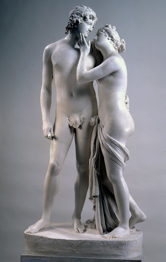 La statua di Canova venne realizzata sotto commissione datagli dal colonnello John Campbell nel 1788. Canova iniziò l’opera, prendendo ispirazione, oltre che dalla storia di Apuleio, anche soprattutto da un affresco di Ercolano raffigurante un fauno che si abbraccia con una baccante.