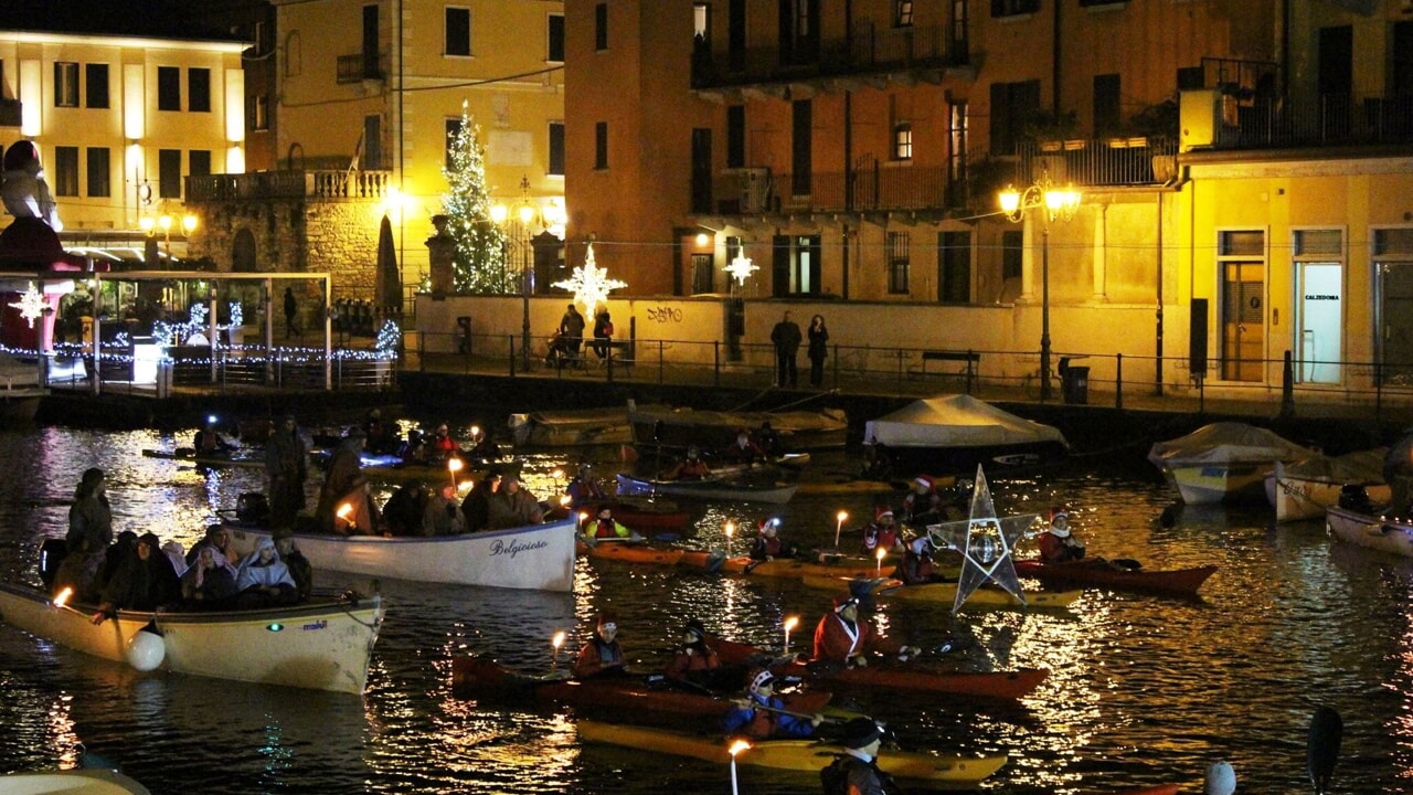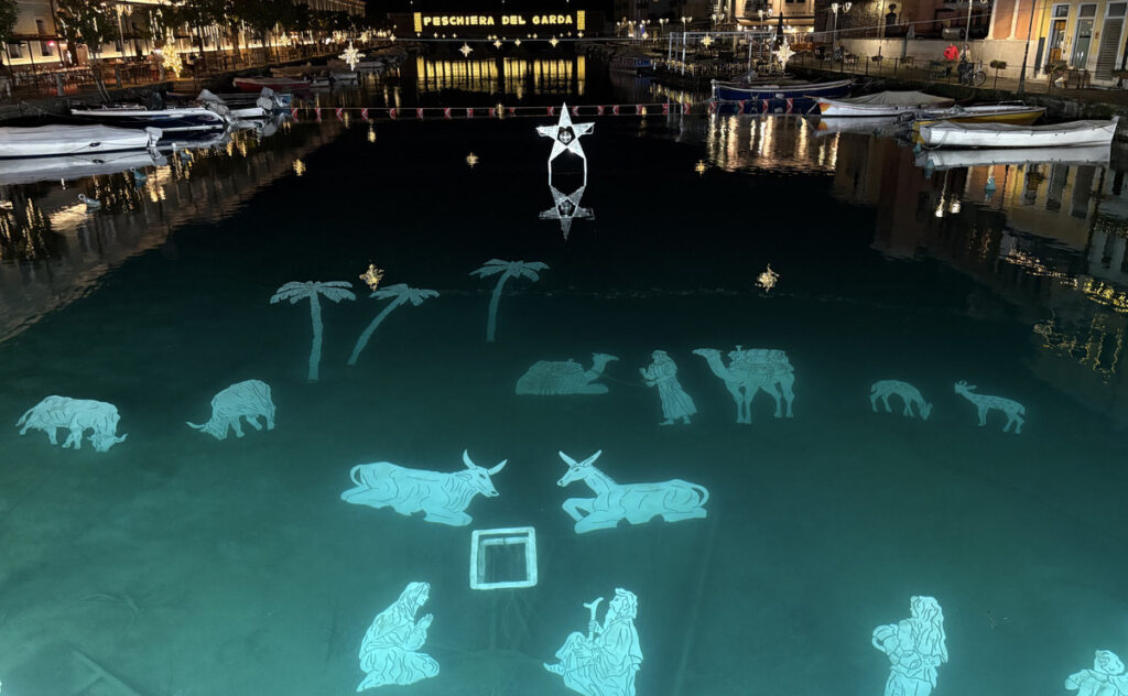 All’ingresso del centro storico, dal ponte sempre fiorito e, per l’occasione, anche illuminato, si può ammirare uno dei canali di Peschiera, dove, tradizionalmente, viene allestito lo speciale presepe subacqueo, famoso in tutta la zona. Il presepe viene installato già a fine novembre da sub professionisti e, solo nella notte tra il 24 e il 25 dicembre, viene arricchito dalla presenza del bambino Gesù.